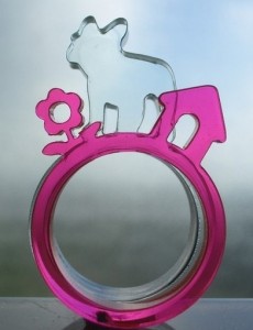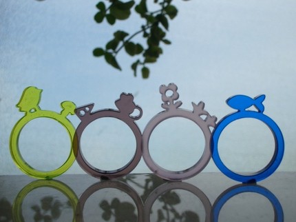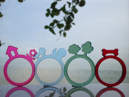 How cute are these? Qift Design makes these acrylic rings you can layer to create your own scene. There are pups and kitties plus vignette rings.