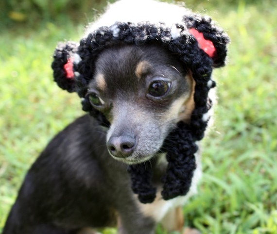 Lord love a duck—these hats just about did me in!  I’m not  a huge proponent of dressing up animals, but I understand the appeal.  Don’t tell anyone, but Saffron does have several hats & festive headbands that we’ve put on her long enough to get a photo.  However, the extreme cuteness of these hats made by “talk2thetrees” on Etsy could make me a dog hat devotee. (thanks, Holly!)
