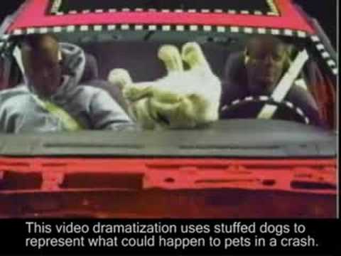 - Third shows what happens to a pet in a crate oriented differently, how flimsy those car barriers are, and an unrestrained in the back window of a car.