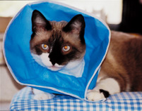 Here’s a handy do-it-yourself alternative for protecting an incision or wound site on your pet’s torso from Instructables. You’ll find good instructions for making a body sock or “cat jacket” out of an old t-shirt.