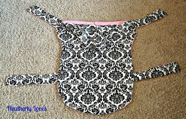 Heather, of Heatherly Loves, used an old dog coat as a pattern to cut out pieces from some oil cloth she had left over from another project. Â She used left-over knit fabric to line the coat, but knit can be fussy to sew. Â I would either not line the coat or would use flannel or light fleece. Â The result is a very functional, thrifty rain coat that looks really cute. Â I like that the belly strap is further back, though you’ll want to be sure a male dog won’t get pee on it. Â Saffron still shakes herself off even when wearing a coat and it always leaves the end of her coat flipped up. Â Having the strap further back might keep this from happening.