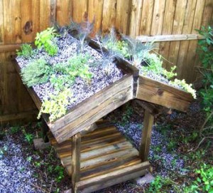 Check out this brilliant Do-It-Yourself Green Roof Veranda (less a house and more of a covered deck.) It has thorough instructions and lots of helpful photos with notes. You can do this! If you use pressure treated lumber, make sure you get a safe version, or use naturally rot-resistant wood like cedar or cypress, or use plastic lumber.