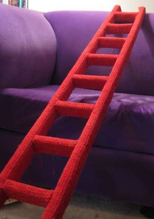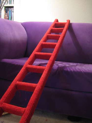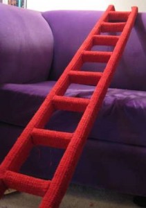 Most cats like high spots and here’s a tutorial on making your cat their own ladder. The nifty thing is you could move this around your house to keep things interesting for your kitty—from a bookcase to a closet to a ledge. Â I bet you could modify this design so you wouldn’t have to drill holes in your bookcase, shelf, etc. Â Lean the ladder at enough of an angle, rubber caps on the feet of the ladder, long brackets with a non-slip material on them, etc.