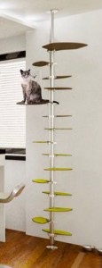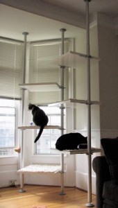 One of the things I’m not crazy about with most cat stands is how big & clunky they are–they can take up a lot of space. That’s why I’m liking these Ikea hacks you can make yourself with 2 Stolmen poles and shelves. And if you want something sleeker, you can buy nifty shelves specifically for making a cat tower using just one Stolmen pole. Not only do these cat towers look less massive than traditional cat stands, they have a very small footprint, and even cooler—you can change them around to keep your kitties intrigued.