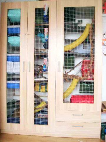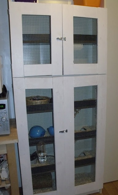 This elaborate rat condo made from an Ikea Kullen wardrobe uses other Ikea products as components for the interior, like the tunnels, litter boxes, and houses.  This condo has lots of connected level and is flexible, so you can move things around as needed.