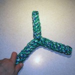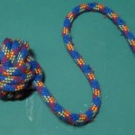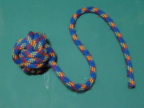Rope toys can make great tug toys for dogs who are heavy chewers. Â Since they have some heft to them, rope toys make good toss toys too. Â They’re durable and can be pretty colorful. Â To make these rope toys, you can buy new rope, use scrap rope, or you can upcycle retired climbing rope—ask at climbing gyms or climbing stores for retired rope. Â Let the knotting begin!