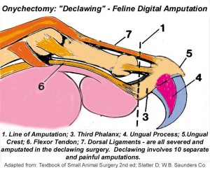 Find out more about what really happens when a cat is declawed. And find out how a dog is debarked.