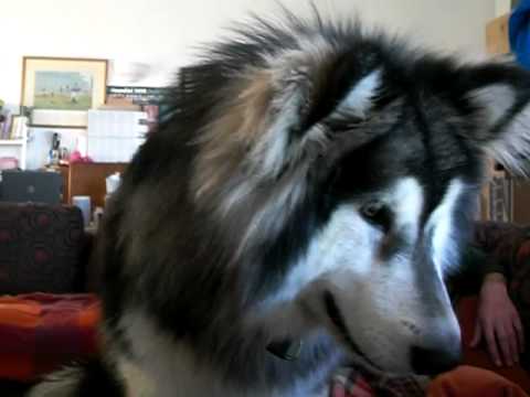 Coyste looks like a Malamute to me. Â He sure is interested in himself in the video on the laptop. Â Looks like he even does a couple of butt sniffs—too funny!