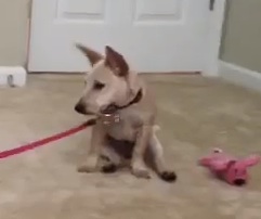 Lucy is adorable—love those ears! Â She’s a Red Heeler/Terrier mix and, despite her running in circles, I suspect she’s a little smarty pants. Â I think she totally knows she’s making the leash move. Â What do you think?