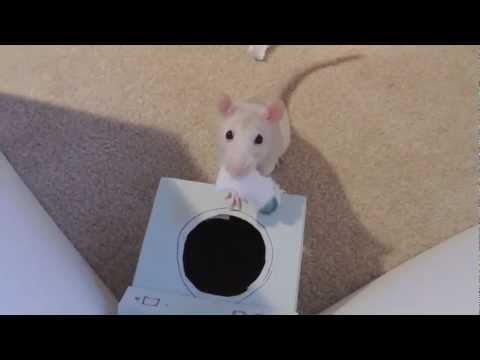 I LOVE this! Â Nami and Pepper are very lucky rats to have such a wonderful person, Abby, taking care of them. Â I wish all pets were so lucky! Â Abby has clicker trained them to do a bunch of tricks—some tricks are pretty lengthy or complex. Â The diving for peas trick is awesome. Â (Instead of a clicker, Abby, clucks her tongue to mark the behavior she wants from the rats.) Â I also love Abby’s DIY props for the different tricks—cute and clever.