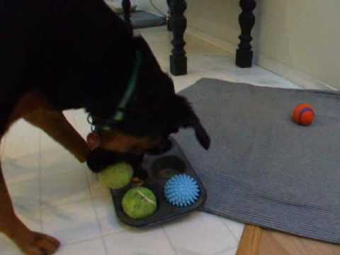 This DIY interactive toy just requires a muffin tin and 6 smallish balls.